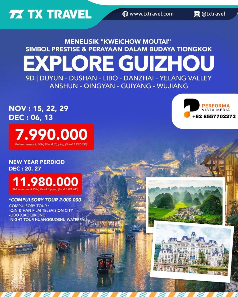 SIMBOL PRESTISE & PERAYAAN DALAM BUDAYA TIONGKOK ^9D EXPLORE GUIZHOUDUYUN-DUSHAN-LIBO-DANZHAIYELANG VALLEY-ANSHUNQINGYAN-GUIYANG-WUJIANG 🗓️ NOV: 15, 22, 29🗓️ DEC: 06, 13Harga =...
